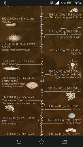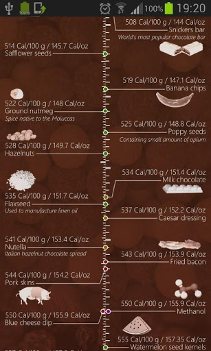- A quick and entertaining way to learn about the calorie contents of various foods, beverages and fuels and how they really compare to each other