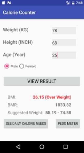 جدا تطبيق خفيفة الوزن، وذلك باستخدام زنك، والطول، والعمر، والجنس، وحساب أشياء مثل مؤشر كتلة الجسم ومعدل الاستقلاب الأساسي.