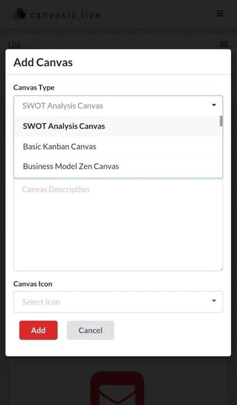 بعد إنشاء الحساب الخاص بك، عند إضافة canvasses الخاص بك، يمكنك اختيار أي نوع من أنواع مثل الأعمال أو العجاف قماش قماش وأكثر من ذلك.
