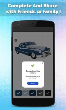 You can color by number when you feel like doing it. The car images get saved every time you leave them, even half done or completed. Kill your free time by coloring cars and completing the pixel pictures.