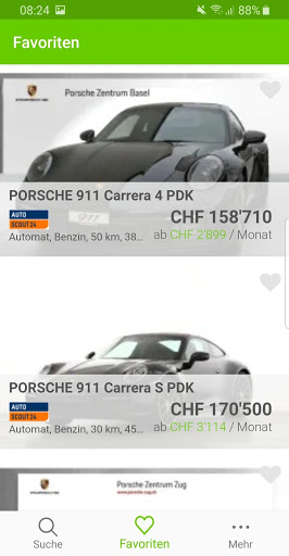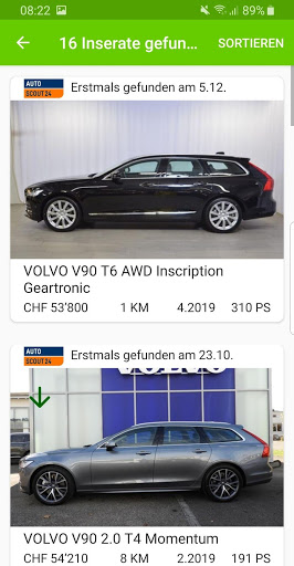 لم يكن من الأسهل أبدا العثور على المركبات على الهاتف الذكي: تصفح على لكمة جميع عروض AutoScout24 و Autoricardo وغيرها من أرافات السيارات السويسرية الكبيرة.