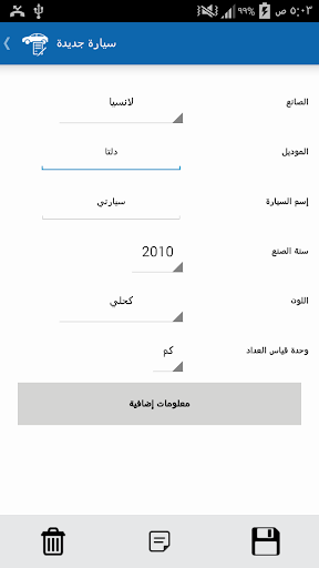 • يُمكنك تطبيق ادارة السيارة من الإحتفاظ بأي عدد من سجلات السيارة التي تحوي معلومات مثل :