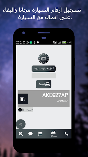 - إضافة رقم لوحة سيارة في قسم "سياراتي" وسوف يتم تنبيهك دائما حول الأحداث المتعلقة السيارة.