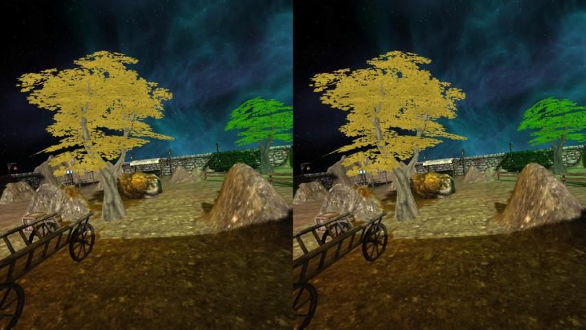 إن وجود بيئة 3D ممتعة من خلال الورق المقوى VR. تحتوي هذه البيئة بعض مضيئة الأشجار والمنازل والأكشاك والعربات والصخور الخ تحريك رأسك 360 درجة والتمتع به!
