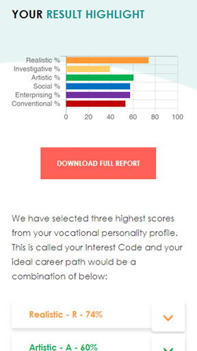 تم تصميم اختبار حياتنا المهني المجاني لإعطاء نظرة ثاقبة لشخصيتك المهنية لأن هذه المعلومات أمر حاسم قبل اختيارحياة مهنية.يستند الاختبار إلى النظرية التي وضعها عالم نفسي مشهور د. جون هولاند.يقيس ستة أنواع من الشخصيات المهنية: واقعية (ص)، التحقيق (I)، الفنية (أ) والاجتماعية (أ) والاجتماعية (E) والتخقل (ج).كما يشار إليها أيضا باسم رموز هولندا أو رموز الفائدة.