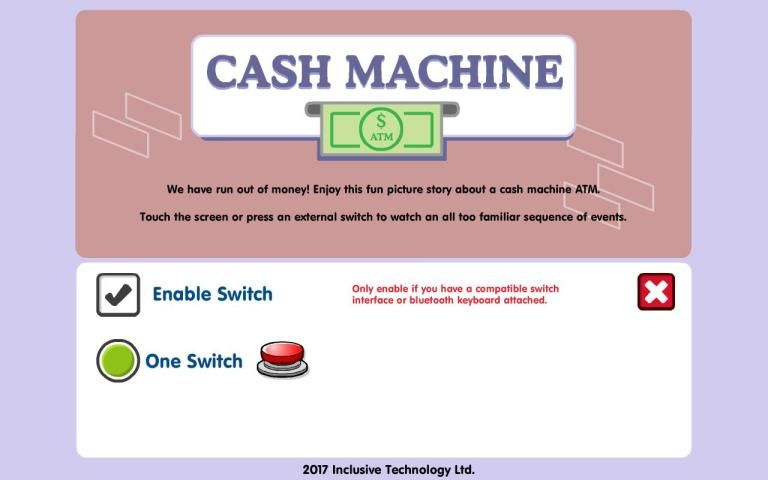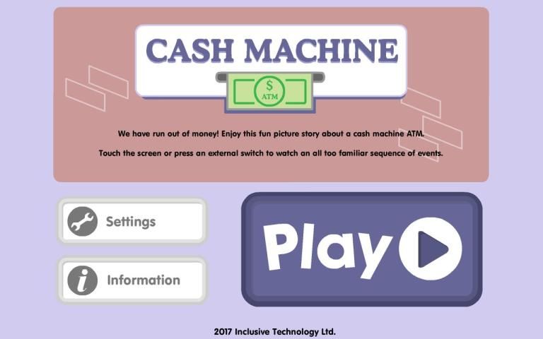 وثمة سبب وتأثير النشاط البسيط والتي تمنحك الكثير للحديث عنها. ببساطة لمس الشاشة أو الضغط على مفتاح للمضي قدما في خطوة قصة الرسوم المتحركة خطوة. مع الرسومات واضحة بسيطة، وقد تم تصميم هذا النشاط شامل لتوفير فرصة عظيمة لمناقشة وتطوير المفردات اليوم اليومية المرتبطة باستخدام أجهزة الصراف الآلي النقدية.
