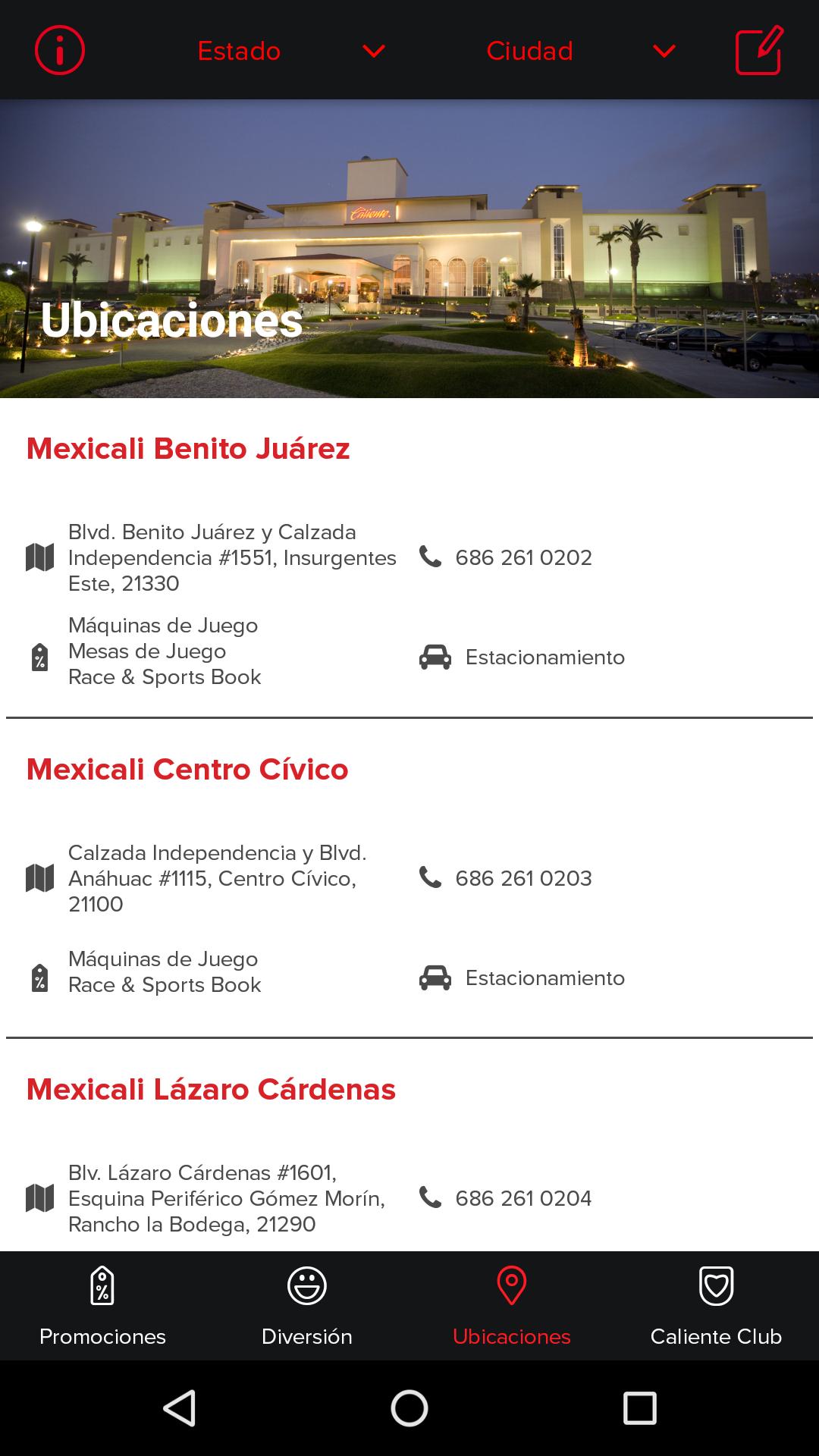 • UBICACIONES. Conoce direcciones, horarios y oferta de juego disponible en cada uno de nuestros casinos.