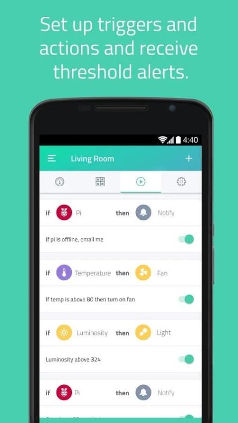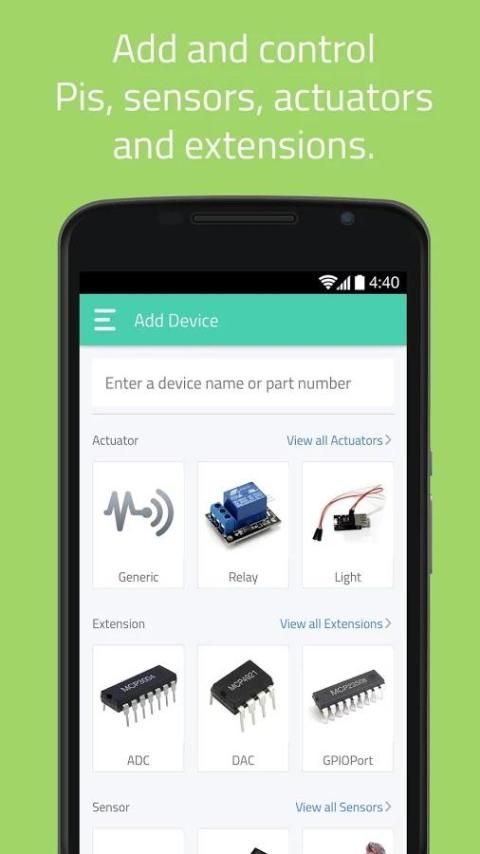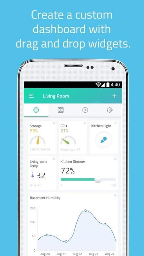 يمكنك إضافة وإدارة ومراقبة جميع أنواع أجهزة الاستشعار والمحركات من لوحة أجهزة القياس هاتفك مع السحب والإسقاط الحاجيات.