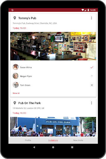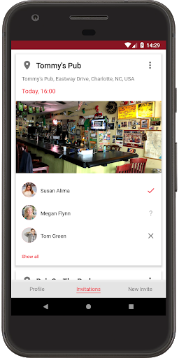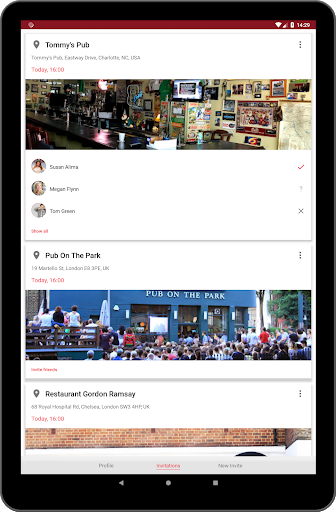 The Inviter يختار موقعا ووقت وأصدقاء لدعوة.