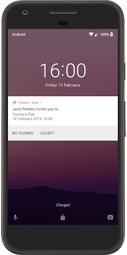 لا يتعين على Invitee فتح التطبيق - مجرد انتقاد على شاشة القفل وأنت انتهيت.
