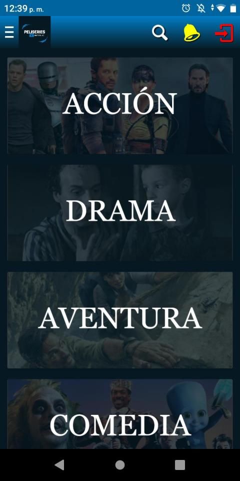 You can enjoy all movies in a high visual quality and organized by their genre, within the application we have: