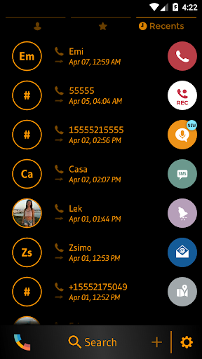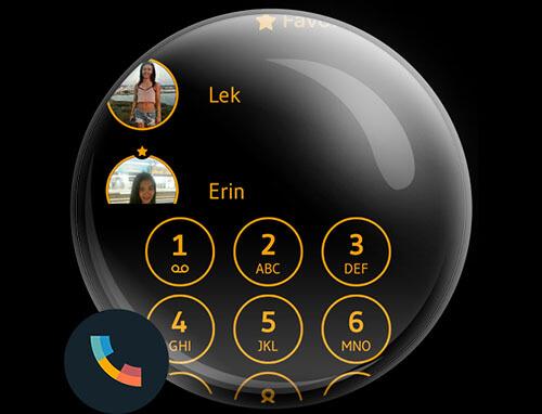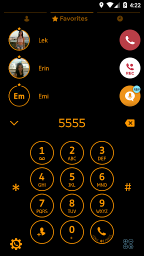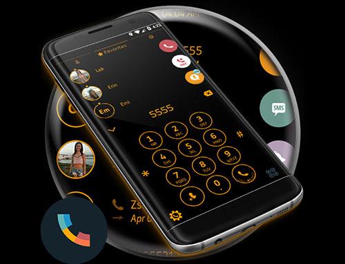 نظرة سوداء وبرتقالية لهاتفك!Circle Orange Buttons وخلفية سوداء بسيطة لإظهار شخصيتك القوية والشباب مع هذا الموضوع المجاني ل Drupe Contacts & Dialer Application