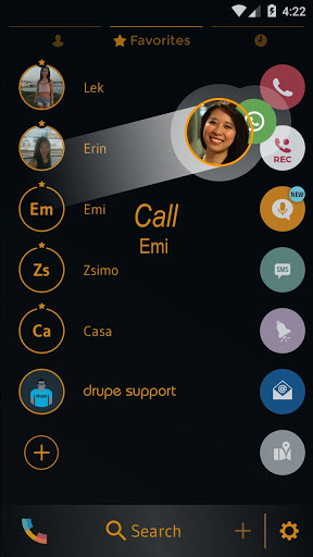 Drupe اتصالات ولوحة الهاتف: Drupe هو تطبيق استبدال طالب ذكي وذكي مجاني وملون لنظام Android الذي يمكنه تغيير مظهره مع العديد من السمات الحرة.مع انتقاد واحد فقط، يجلب Drupe جهات الاتصال وتطبيقات الاتصالات الخاصة بك إلى شاشة واحدة.
