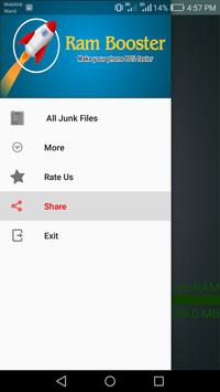وبصرف النظر عن هذه يوفر هذا التطبيق أيضا وظيفة تفريغ ذاكرة الرام. رام التنظيف من الملفات المؤقتة وغير الضرورية لزيادة سرعة الجهاز والأداء. هذا هو مفتاح نظام تشغيل الروبوت سرعة التشغيل أمثل والاستقرار.