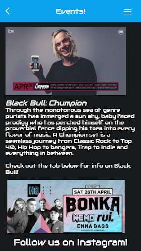 Club eX app looks to provide top quality information to the nightclubbing population of South Australia. Using Buildfire's app design process we have been able to construct a free flowing experience that speaks to customers in a modern/ nightclubbing way.