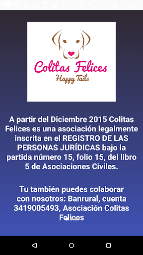 تطبيق Colitas Happy App هو تطبيق طورته المؤسسة ذيول سعيدة لتوفير المساعدة الاجتماعية في منطقة Quetzaltenango ومحيطها مع أيام التعقيم للكلب والقطط لمحاولة تقليل أكثر من سكانها في مناطق Quetzaltenango، وبالمثل ، يقدم التطبيق خيار إنشاء مطالب ضد إساءة معاملة الحيوانات بفضل المرسوم 05-2017 من جمهورية غواتيمالا.