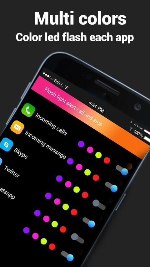 Color Flashlight is color flash launcher with Torch LED Flash Alert On Call & SMS. Best free Color flash on call/SMS Color screen light app. Get color flash alert to make sure about color call flash or blinking sms flash alert on your cell phone, and enjoy multicolor flash on call and sms notification color flashlight app.
