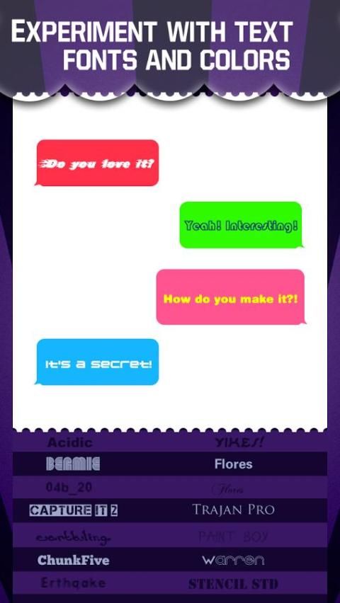 يمكنك تخصيص رسائلك مع مختلف الآثار: فقاعات ملونة، والنصوص الملونة، والخطوط النسخية، وفقاعات محكم، والرسوم المتحركة تحت عنوان، الحب ستلينغس الخط تحت عنوان، BOLD، أو مائل!