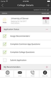 Common App On Track is a companion tool to the Common Application® for First Year applicants. Common App On Track helps you stay on track with what you need to successfully complete your college applications. You can view each deadline and submission status, add and invite recommenders, and create your own list of reminders and tasks.