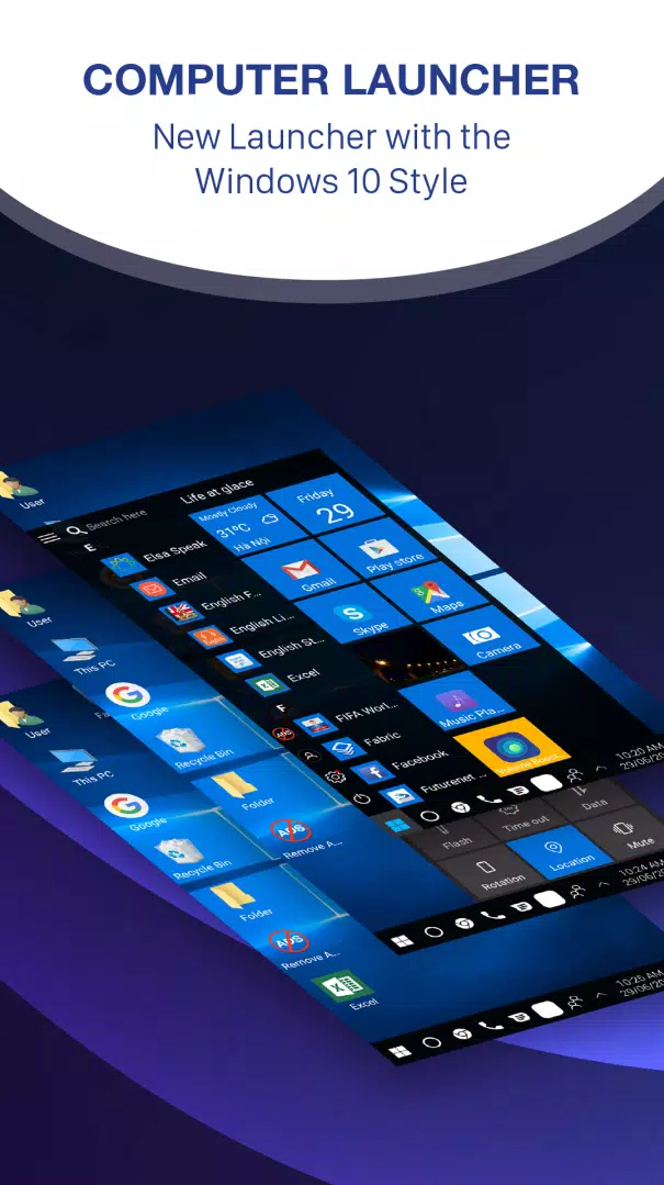 Computer launcher with make your Android phone home screen looks like a Desktop launcher style wins 10. Custom desktop computer design feel of the fastest wins theme wins quick search pro on the win 10 and receiving notifications from the system you will update it like wins 10 for android.