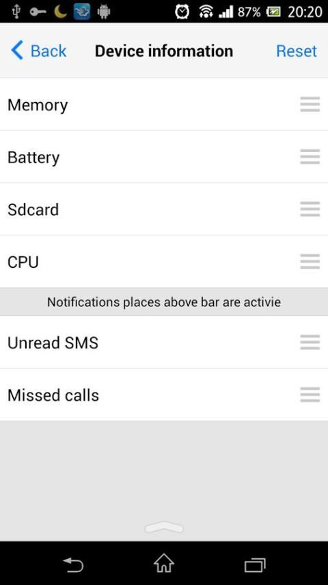 - اضغط طويل على مؤشر السهم قادرة على الاختباء في شريط الحالة