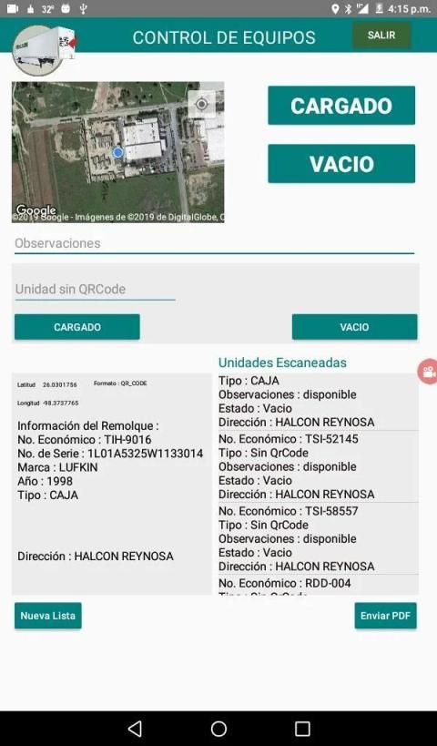 System for the control of Equipment through the QR Code and obtaining the precise location. It also generates the Report in PDF.