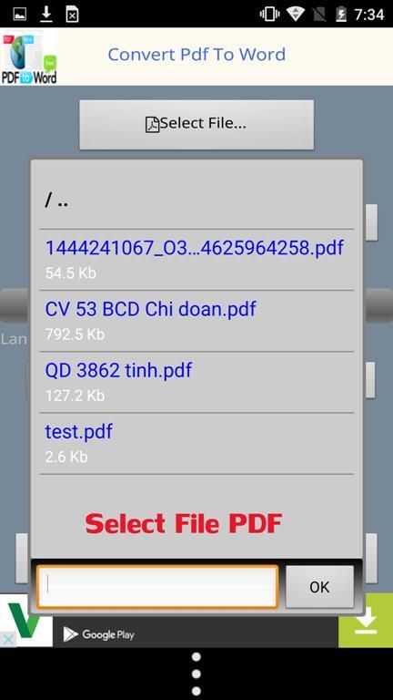 - You can search for app on CHPlay by PDF2Word, PDF to Word, ... After download and install, you proceed to launch the app.