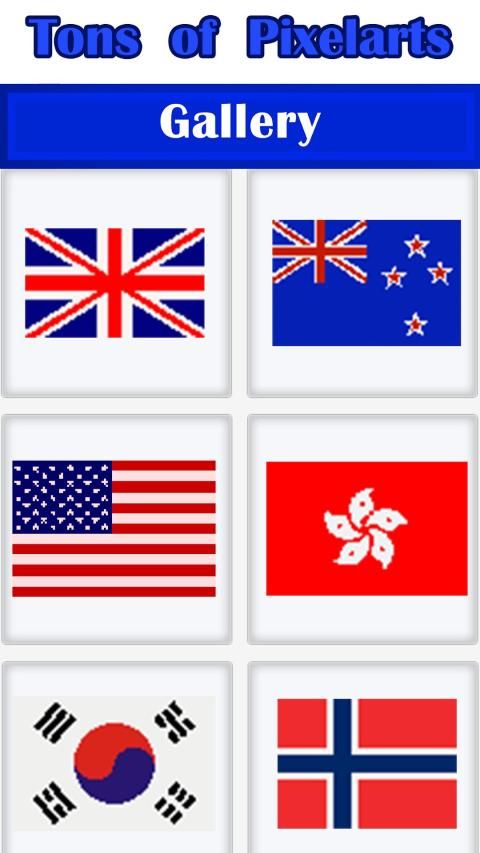 Country Flag color by number is just color by number and Number coloring app to do Pixel Art and release your stress away by country flag PixelArt color by number. Color by number and build an pixel art. Discover tons of FREE 2D artworks or import your images from your phone gallery. PixelArt Country Flag color by number app is relaxing.