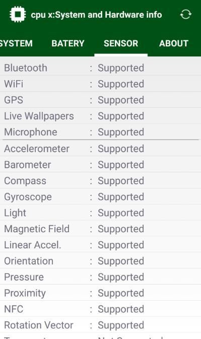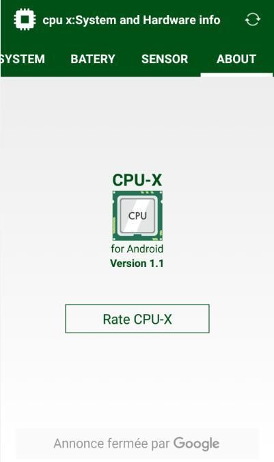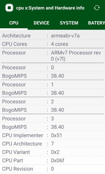 يظهر وحدة المعالجة المركزية-X رام المعلومات حول الجهاز مثل المعالج، والنوى، والسرعة، والنموذج، ذاكرة الوصول العشوائي، وكاميرا، وأجهزة الاستشعار الخ