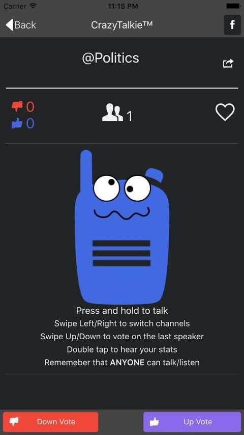 CrazyTalkie هو مركزية الصوت، سريع الزوال، مجموعة مجهولة تطبيق الدردشة الصوتية وخدمة حيث يمكنك التحدث إلى المستخدمين المجهولين الآخرين على القنوات السمعية.