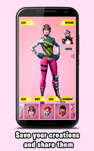 تطبيق للفتيات، في النهاية. قم بإنشاء جلود المفضلة لديك مع المولد، يمكنك التغيير من الرأس والجسم والساقين والخلفيات. إنه مجاني تماما للتنزيل للاستمتاع به، التطبيق Nº1 واحد الوحيد الذي تم إنشاؤه لمحبي لعبة Battle Battle Royale. يتم تحديث الجلود يوميا وكل يوم سيكون لديك جلود جديدة من الفتيات من المتجر الرسمي.