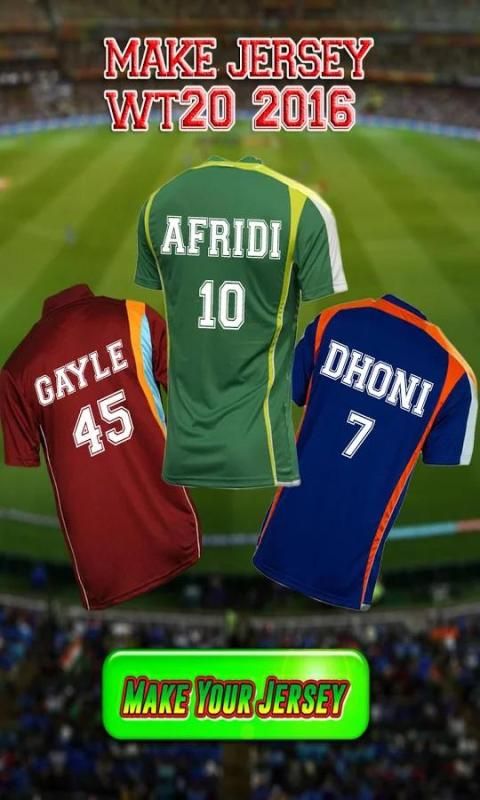 جعل القميص الخاص بك والانضمام إلى روح الكريكيت. اختر من قائمة المنتخبات الوطنية، واختيار عدد جيرسي بك إرسال اسمك ومشاركتها على وسائل الاعلام الاجتماعية.