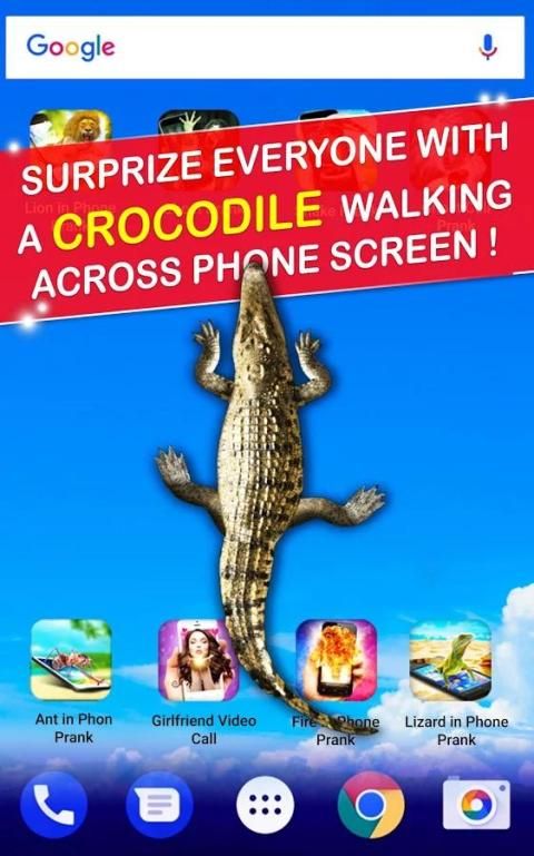 التمساح على شاشة نكتة - إعداد التمساح على المشي على شاشة الهاتف كما يحلو لك. ترفيه أصدقائك مع التمساح السلس على شاشة مضحك نكتة. تمساح المشي على شاشة الهاتف كما لو أرضه.