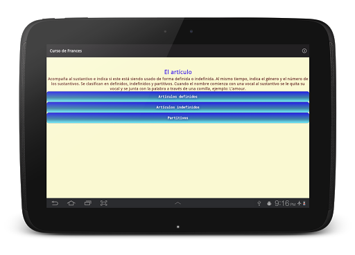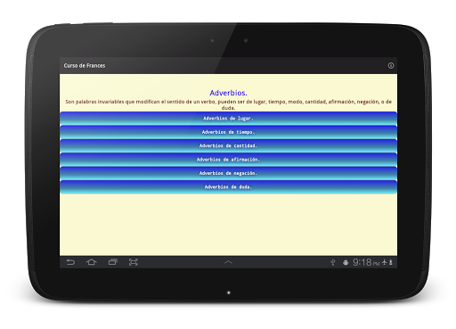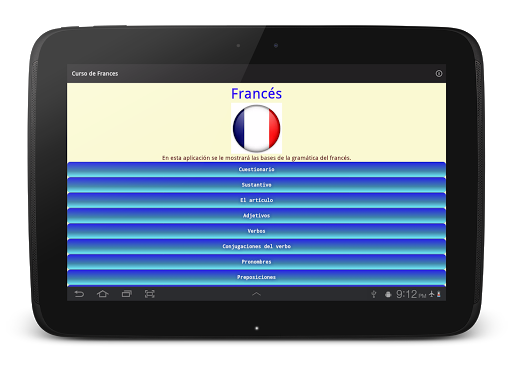 En esta aplicación usted encontrará conceptos básicos de gramática francesa: la formación del masculino y el femenino, pronombres, conjugación de verbos y mucho más. Todo ello pensado para el hablante del español que busca acercarse a la lengua francesa.