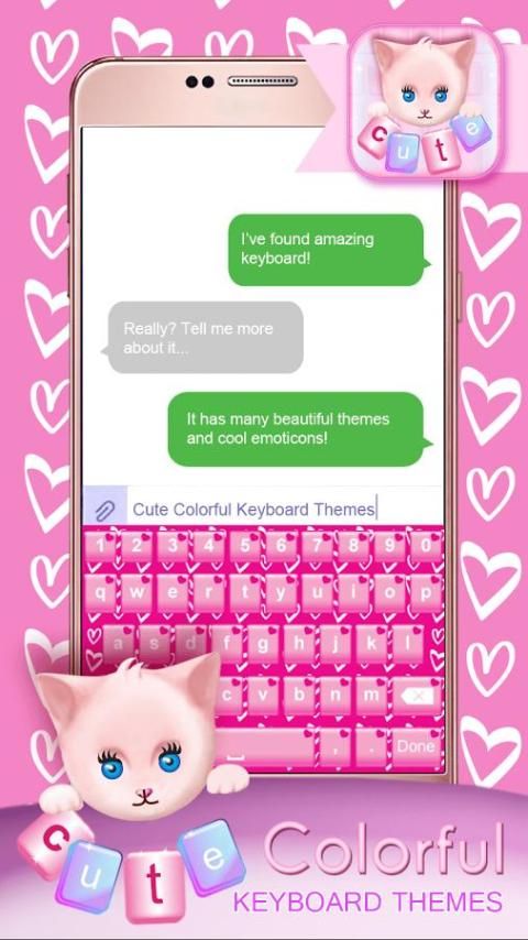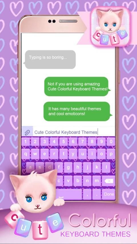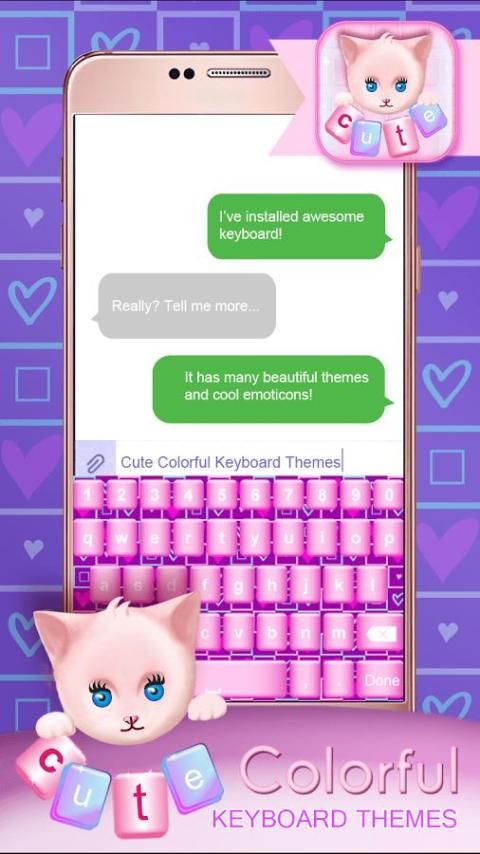 ❃ Our ✿ Cute Colorful Keyboard Themes ✿ is a smart keyboard app for Android that makes typing fast, easy and fun. Using emoticons and stickers is a popular way to express your emotions. When you are angry, an angry sticker can express more than a word could. When happy, a lot of different funny and cheerful emoticons can help you expressing that strong feeling! Our “colorful themes” are what you need!!! Sweet font colors, background images, cool effects are reasons why you should install the “best keyboards” for AndroidTM! The app function allows you to choose selfies and picture from gallery as keyboard skins or use camera to take a photo and make it your own theme. The best emoticons keyboard themes ever are finally here!