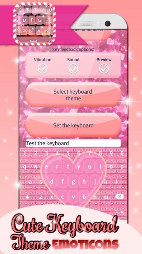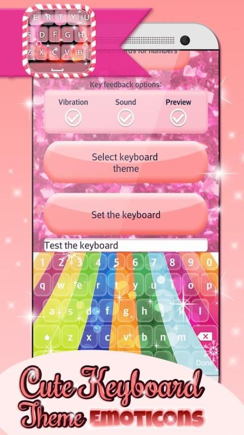 Hello to all the lovers of awesome keyboard covers! Would you like to install nice ''keyboard themes with emojis'' in fantastic colors? Download our awesome phone application totally free of charge and refresh your old mobile! ✯Cute Keyboard Theme-Emoticons✯ is a brand new application on the market for AndroidTM! If you like to use typing keyboards with sweet fonts and emojis, you should be the one to decorate your mobile device with unique themes! You can choose among funny keyboard pictures and create fantastic, personalized keyboard skins! Install our cute keyboard changer free and enjoy your texting!
