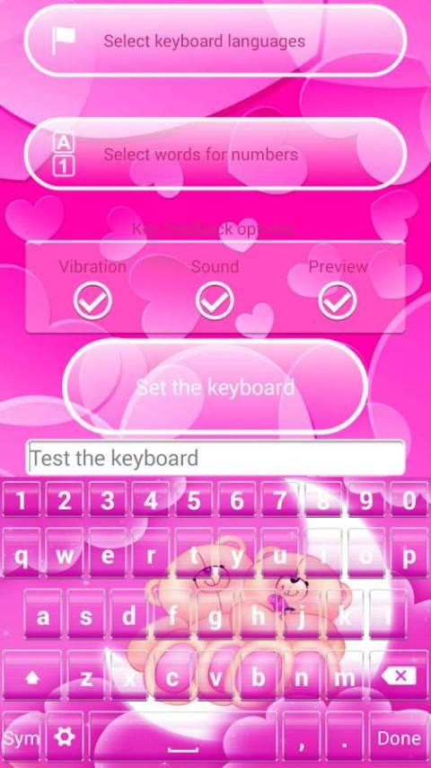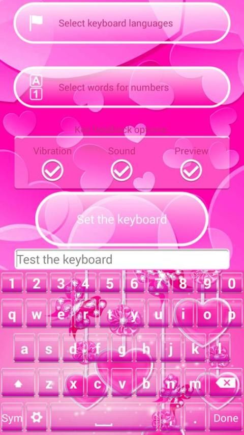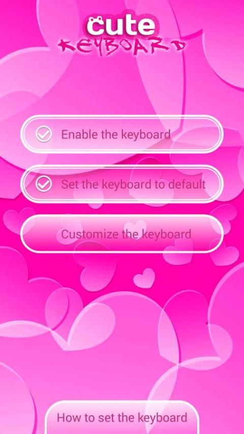 ♥ Return to the application, then select “Set the keyboard to default” button and select “Cute Keyboard for Girls”