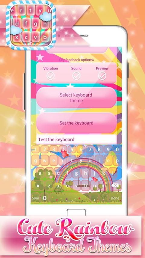 If you want to personalize your keyboard and attract everyone's attention, here is a rainbow love keyboard, one of the best free applications from the market for AndroidTM. Also, if you're tired of your simple touch screen keyboard and you want to get free color changer, we have a ''rainbow emoji keyboard'' specially for you! Download ✧Cute Rainbow Keyboard Themes✧ app free of charge and let your keyboard picture glow in the dark! Accessorize your smartphone with this cool rainbow application for beautiful key pads and get refreshing look for your Android device.