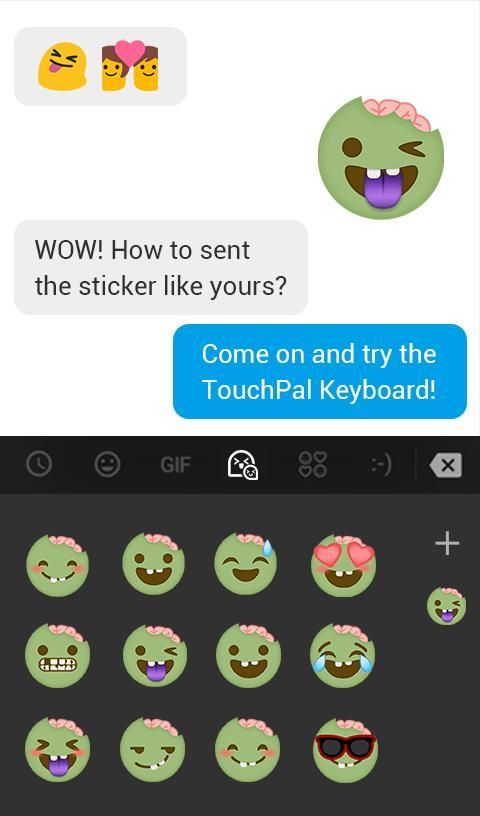 - يمكنك أن تجد ملصقات على لوحة رموز تعبيرية على لوحة المفاتيح TouchPal.