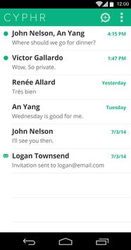PRIVACY WITHOUT SACRIFICES. Cyphr doesn't sacrifice simplicity or features for privacy. Start single or group conversations, send attachments, and more.