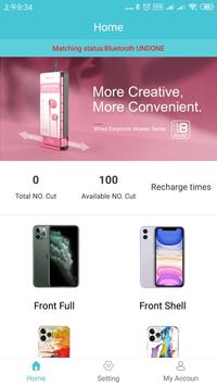 This App is developed to be used with the Devia Intelligent film cutting plotter. Connecting through bluetooth, clients can choose the phone model on the APP, and send orders to the machine to cut the film for the selected model. This solution will help clients to save a lot of cost on stocking screen protectors for all the models.