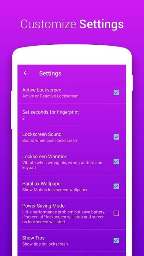 احصل على افضل تخصيص شاشة القفل بصمات الأصابع لقفل الهاتف الروبوت الخاص بك، والآن هذا التطبيق المجاني يعمل مثل خزانة إصبع شاشة الطباعة. يمكنك أيضا تناسب هذه الماسحة الضوئية قفل مع ورق الحائط الخاص بك الخاصة! سوف أصدقائك نعرف أبدا خدعة وتركهم يتساءلون. يمكنك تغيير عدد الثواني لفتح شاشة الإعدادات.
