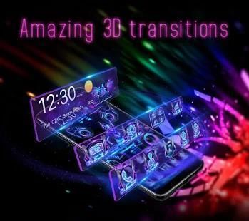 World leading 3D transition and folder switching effects on phone screen in 3D Neon DJ Music Launcher, with cool and simple 3D screen navigation as well.