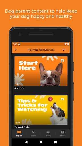 - التعرض: البرامج المصممة مع التعرض للأصوات والضوضاء الشائعة للكلاب. اختر من بين العديد من مقاطع الفيديو الخاصة بالكلاب لمشاهدة لتصبح معتادًا على الزناد الأصوات مثل ركوب السيارات وأرنين الباب.