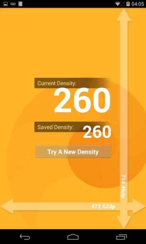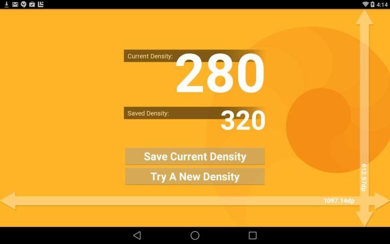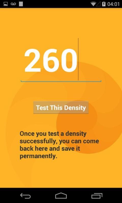 اكتب في الكثافة جديدة، التمهيد لاختبار ذلك، وإذا كنت ترغب في النتائج، والعودة إلى التطبيق وتخزينه بشكل دائم. إذا كنت لا تحب الكثافة، أو تعطل شيء، مجرد إعادة تشغيل الجهاز لاستعادة الإعدادات الأصلية.