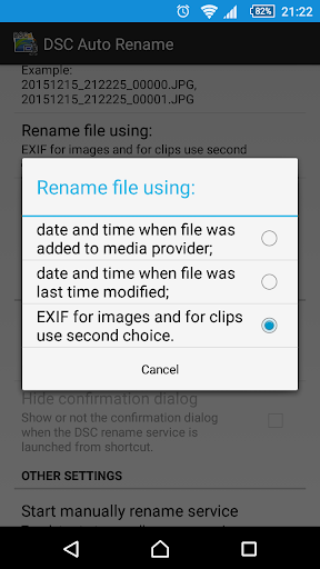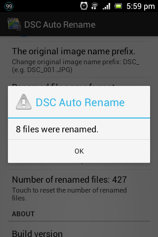 I made this application to rename pictures and clips from my phone Sony Xperia V automatically based on date and time of file, from DSC_0001.JPG or MOV_0001.mp4 to 20150414_213616.JPG or 20150414_090523.mp4.