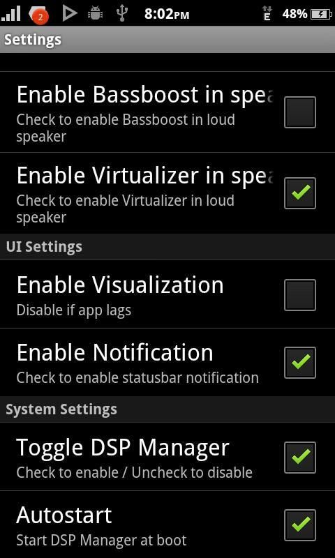 DSP مدير لايت هو التطبيق حرة وقوية لالروبوت معالجة الصوت. لأنه يأتي مع معادل الرسومات، bassboost، وvirtualizer. هدف التعادل 2X في اختبار بيتا، فإنه قد لا تعمل على جهازك.