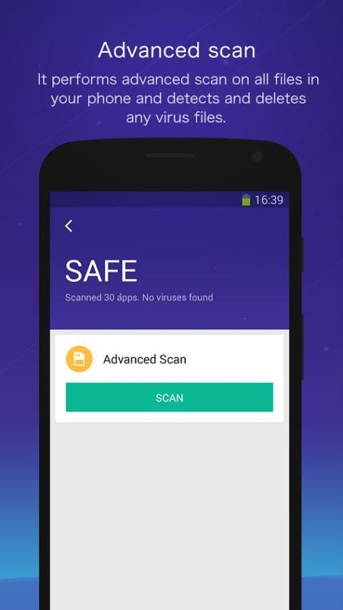 ينفذ المسح الضوئي المتقدمة على كافة الملفات في هاتفك ويكتشف ويحذف أي ملفات الفيروس.