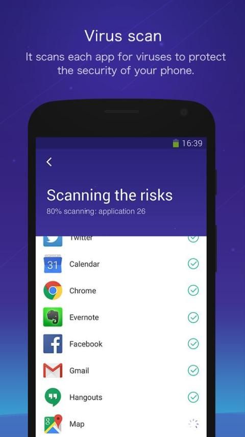 وهو يقوم بمسح كل التطبيق للبحث عن الفيروسات لحماية أمن هاتفك.