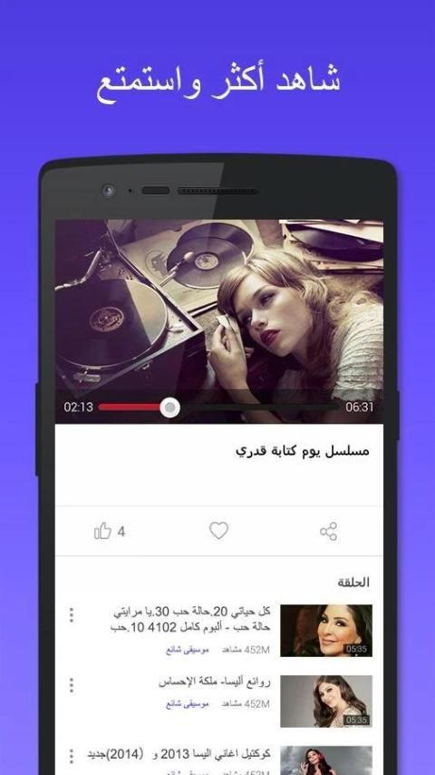 - ممكن تضيف الفيديوهات التي تعجبك الى المفضلة بنقر بس وممكن كمان تشاركها مع أصدقائك أصحابك وعائلتك بسهولة.